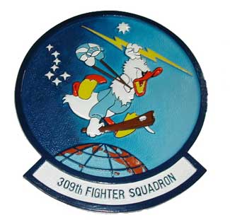 This solid mahogany wall plaque shows the 309th Fighter Squadron Logo.