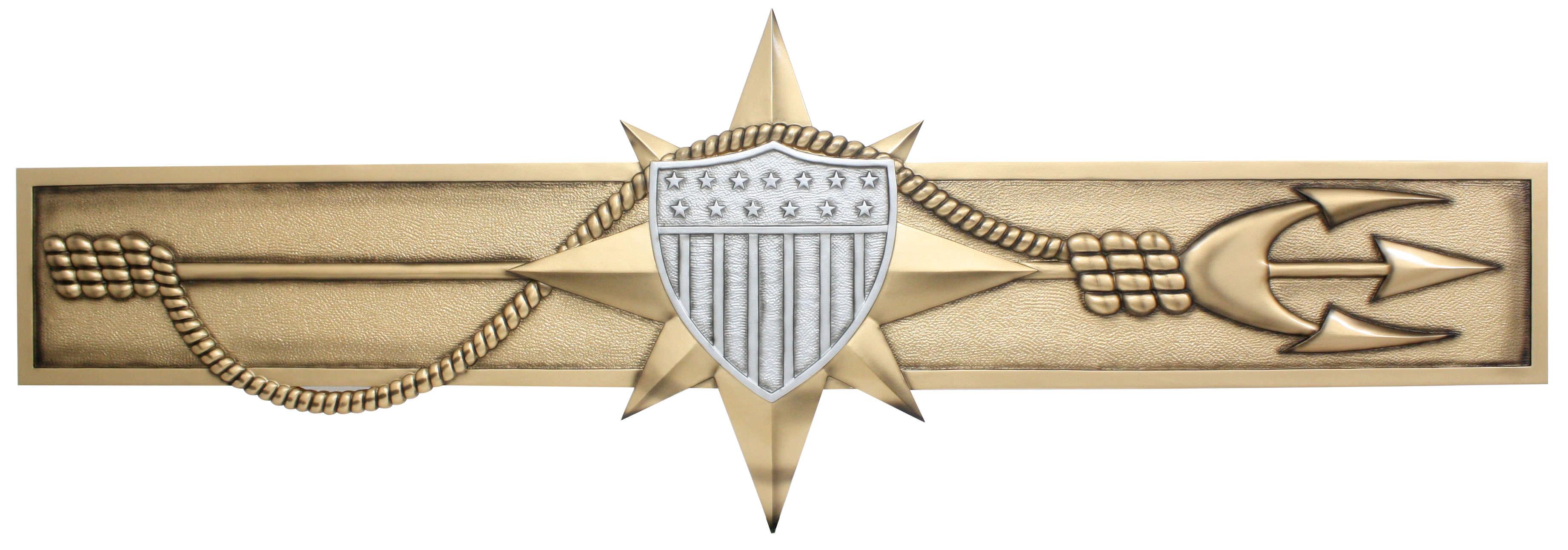 The Marine Safety Insignia pin is made into a plaque out of mahogany wood.