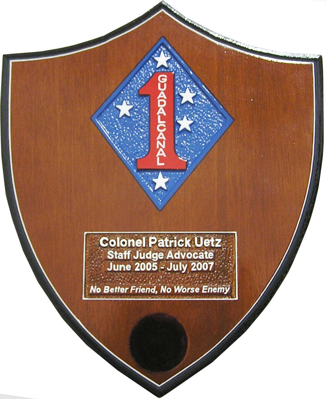 All presentation plaques are made of mahogany wood. Each plaque is hand carved and hand painted which make it easier for MilitaryPlaques.Com to follow your custom design specifications. You can have your logo carved in the wood in 3D relief. A short dedication inscription can also be carved in the plaque. Another option is to a lot a space for your challenge coin. For the challenge coin holder we will need the coin actual dimensions: Diameter and depth, and we will take care of the rest.