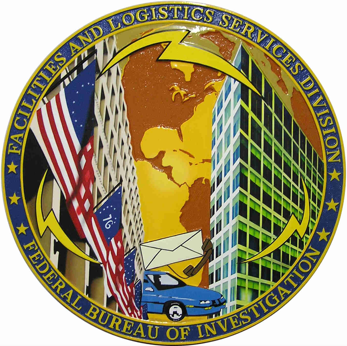 The FBI Facilities and Logistics Services Division seal plaque is made from mahogany wood. The plaque is handmade with detailed carving of the design in 3D relief and painted in full color or as specified. The plaque is designed with key hole at the back for mounting purposes. This plaque is perfect as podium and wall display r as a gift for anyone retiring from the FBI Facilities and Logistics Services Division.