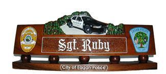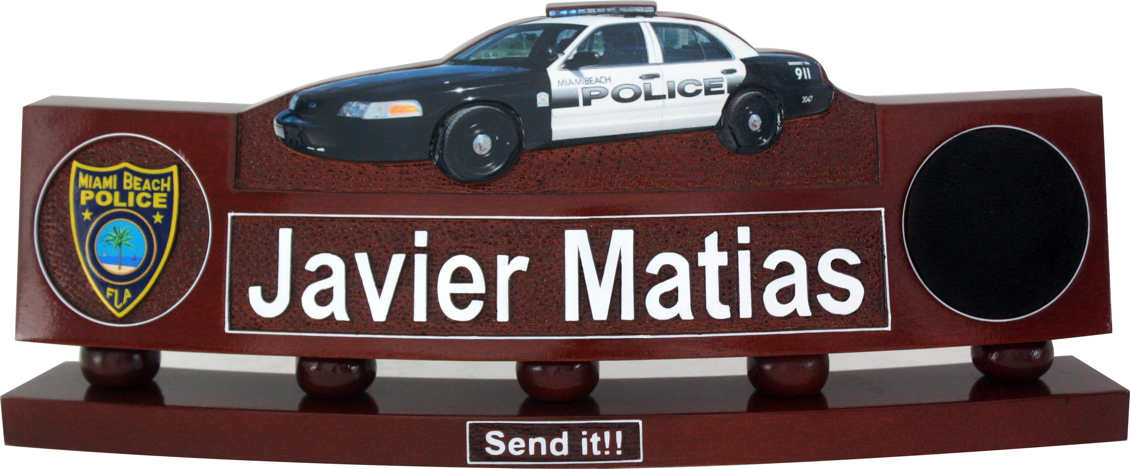 police department desk nameplate with patrol car