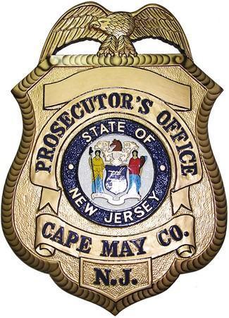 This solid mahogany wall plaque shows the Cape May Prosecutors Badge Plaque. Hand carved and hand painted mahogany wood plaque. Perfect as a wall plaque or podium plaque.