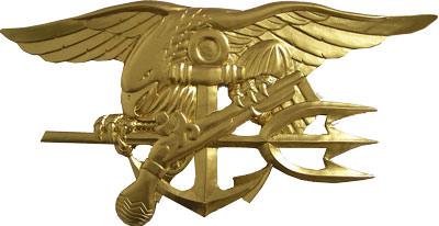 The Special Warfare insignia, also known as the "SEAL Trident", or its more popular nickname, "The Budweiser", is one of the most recognizable military badges of the United States Navy. The Special Warfare insignia consists of a golden eagle clutching a U.S. Navy anchor, trident, and flintlock style pistol. The decoration is considered a "successor badge" to the obsolete Underwater Demolition Badge.