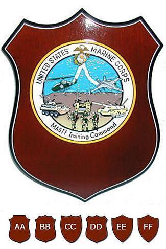 Please select the size and shape of plaque required and upload any graphics/images required. Please use the Instructions section for layout guidance.Hand Carved from Solid Mahogany and then hand painted and finished. Any Marine Corps Insignia, Emblem or Logo carved on to a traditional shaped mahogany plaque.