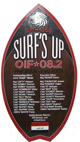 HMH 363 Surfs Up Cruise is an example of deployment or plankowner plaque. Typical size for this kind of plaque is 16" diameter and larger. When ordering it is necessary to send us the detailed instruction if the draft mock up design is not available. The list of names in MsWord Format is also necessary to make sure the plaque design is suitable to the size required. All deployment and plankowners plaque is made of mahogany wood with details carved in the wood in 3D relief and painted in full color or as specified.