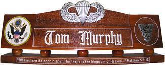The desknameplate's approximate dimensions are: Width: 16" Height: 7" Depth: 3".