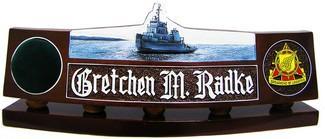 The desknameplate's approximate dimensions are: Width: 16" Height: 7" Depth: 3".
