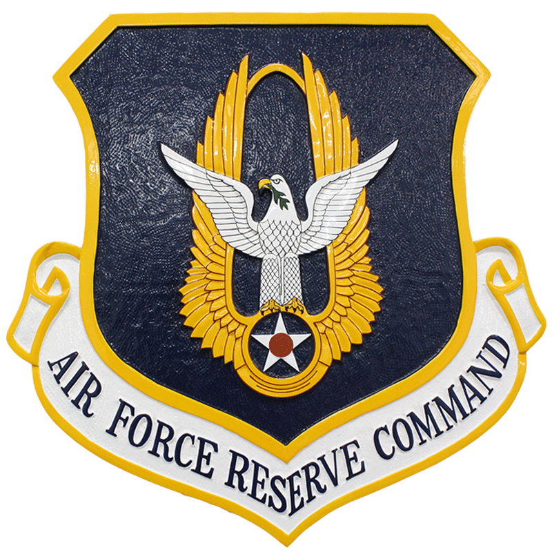 This solid mahogany wall plaque shows the US Air Force Reserve Command Emblem or Logo.