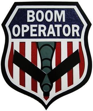 This solid mahogany wall plaque shows the seal for Air Force Boom Operator.
