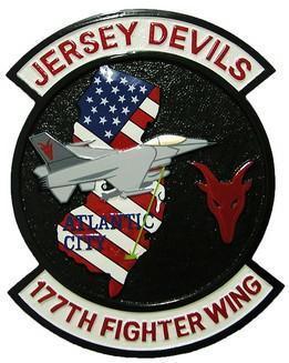 This plaque shows the emblem of the 177th Fighter Wing. This plaque is hand made from carving, painting and finishing . Made of solid mahogany wood, this item is guaranteed to last. This item can also be a wall plaque or a podium plaque. A recessed hook enables the plaque to hang flush against any wall.