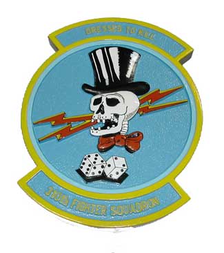 This solid mahogany wall plaque shows the Squadron's Logo or Emblem. This hand carved and hand painted wooden plaque is perfect as a wall plaque or podium plaque.