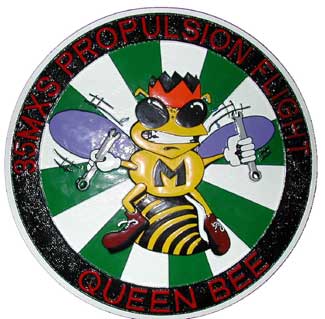 This solid mahogany wall plaque shows the 35 MXS Squadron Logo or Emblem. This hand carved and hand painted wooden plaque is perfect as a wall plaque or podium plaque.
