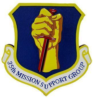 This solid mahogany wall plaque shows the 35th Air Wing's Mission Support Group logo. Hand carved and hand painted mahogany wood plaque. It is perfect as a wall plaque or podium plaque. Fantastic addition to any memorabilia collection. Great air force retirement gift, USAF graduation gift, or Air Force recognition awards. A recessed hook enables the plaque to hang flush against any wall.
