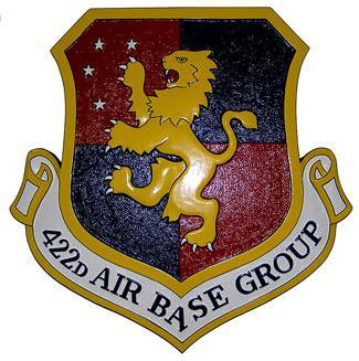 This item is made of solid mahogany wood, handmade from carving to its finishing touches. A fantastic gift for personnel under the 422d Air Base Group. It can also be personalized according to your specification. A recessed hook enables the plaque to hang flush against any wall.