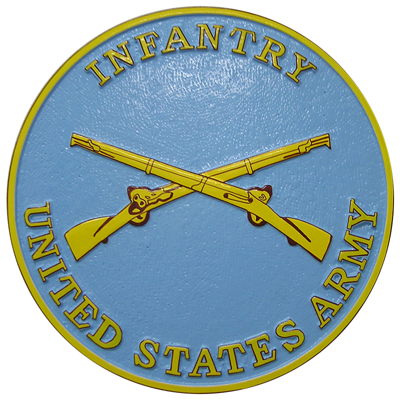 This solid mahogany wall plaque shows the US Army Insignia Infantry Seal Plaque. This hand carved and hand painted wooden plaque is perfect as a wall plaque or podium plaque.