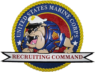 Marine Corps Recruiting Command logo is made into plaque following the actual cut-out shape of the official design. The plaque is hand carved from mahogany wood and hand painted in full solid color following the pantone of the original artwork. This is perfect as a wall display, available at any size. The MCRC, based in Quantico, Va.,primary mission is to supply recruiters with qualified and enlisted the best talent they can find for the Department of the Marine Corps. The Marines are popularly known as "The Few, The Proud".
