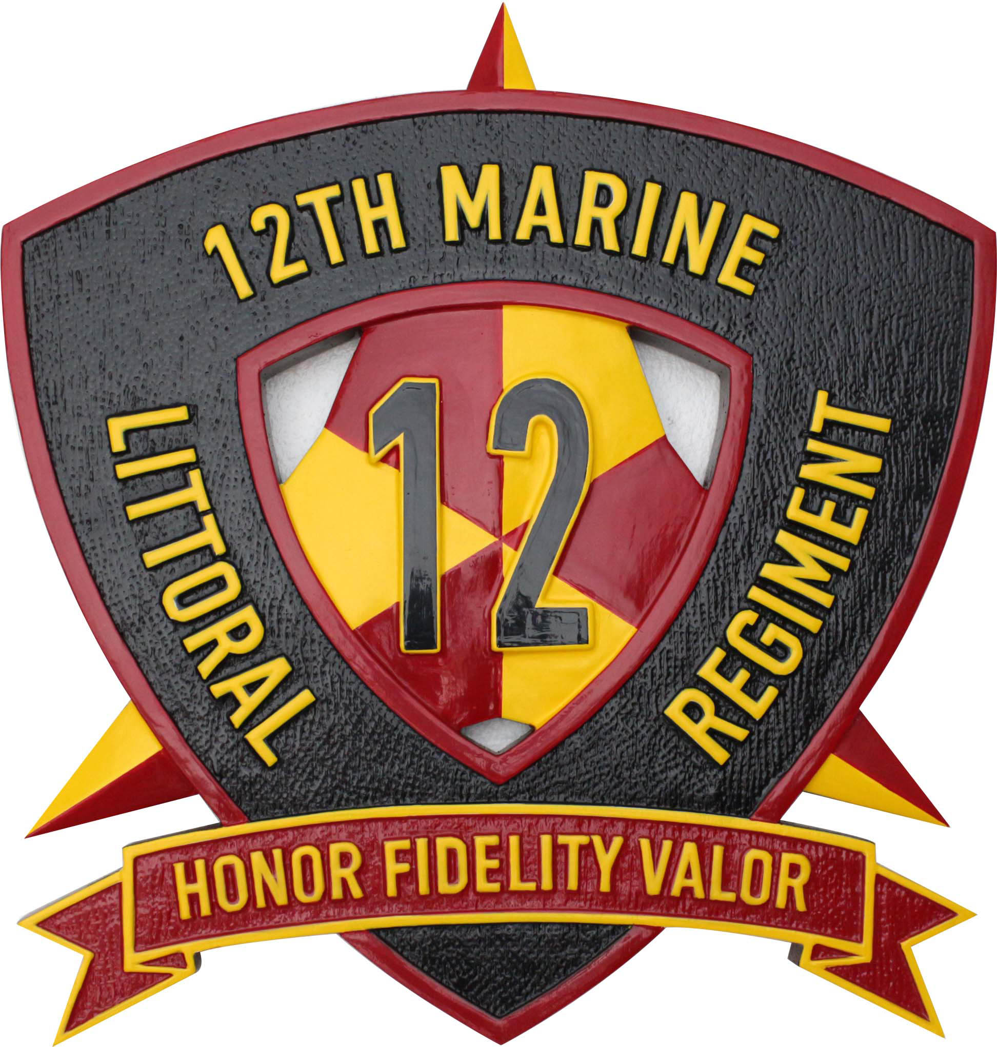The 12th Marines Patch, as a Wall Plaque; Capturing Valor in Mahogany