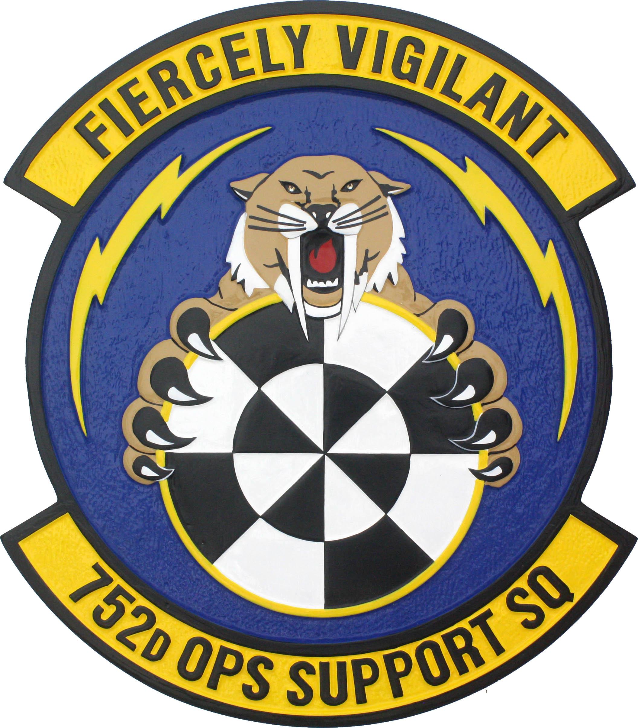 752d Operations Support Squadron Patch Plaque mahogany made plaque is perfect as wall, door and podium display. The plaque deyails and design is hand carved in 3D relief and painted in full color following the official pantone colors of the squadron logo.