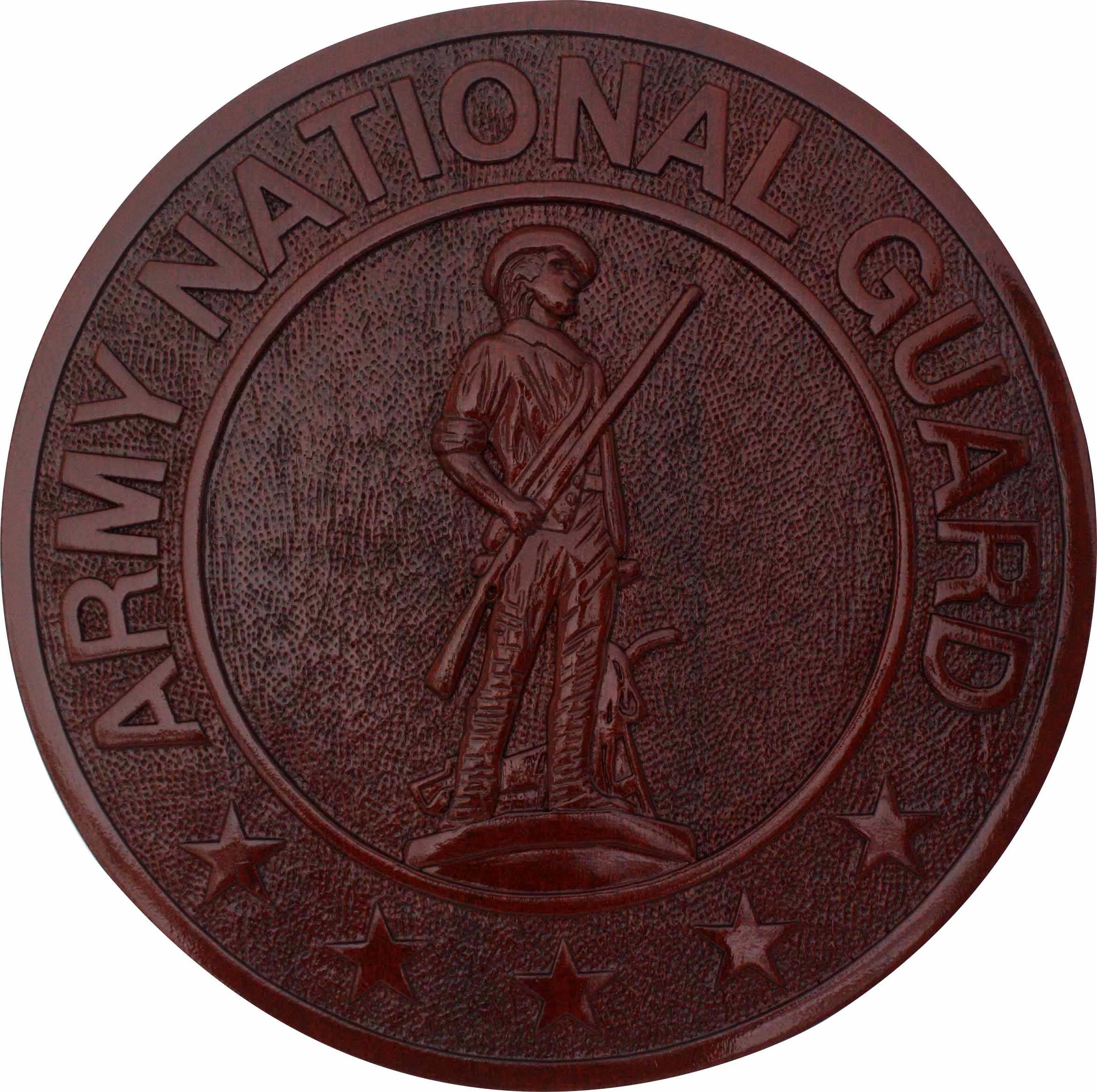This solid mahogany wall plaque shows the Seal of the Army National Guard