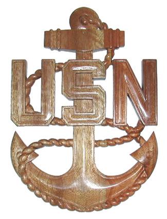 Chief Petty Officer Plaque hand carved in solid mahogany wood