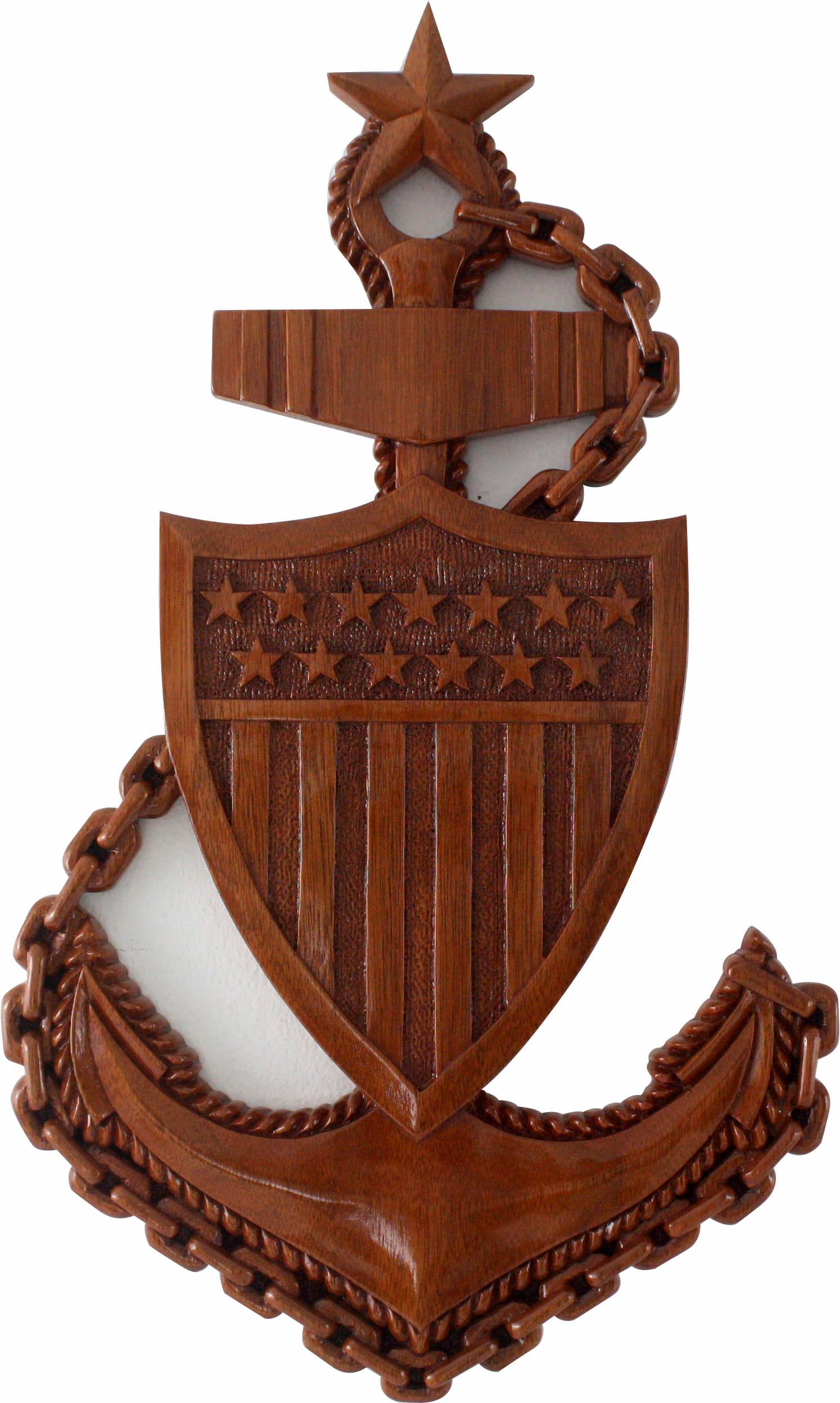 Senior USCG Chief Petty Officer Plaque hand carved in solid mahogany wood