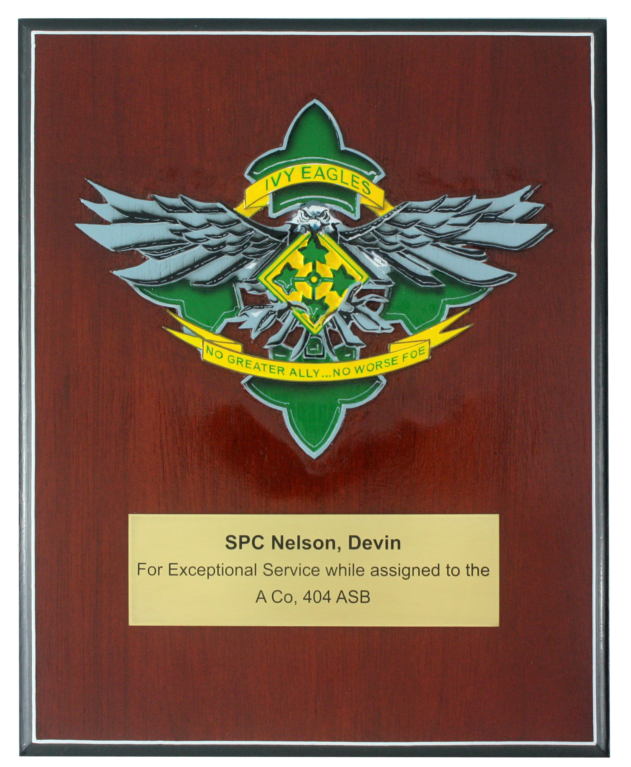 For examples of this type of plaque follow this link -Military Department Seal Plaques