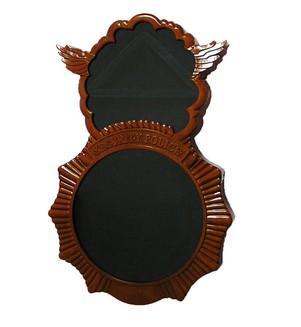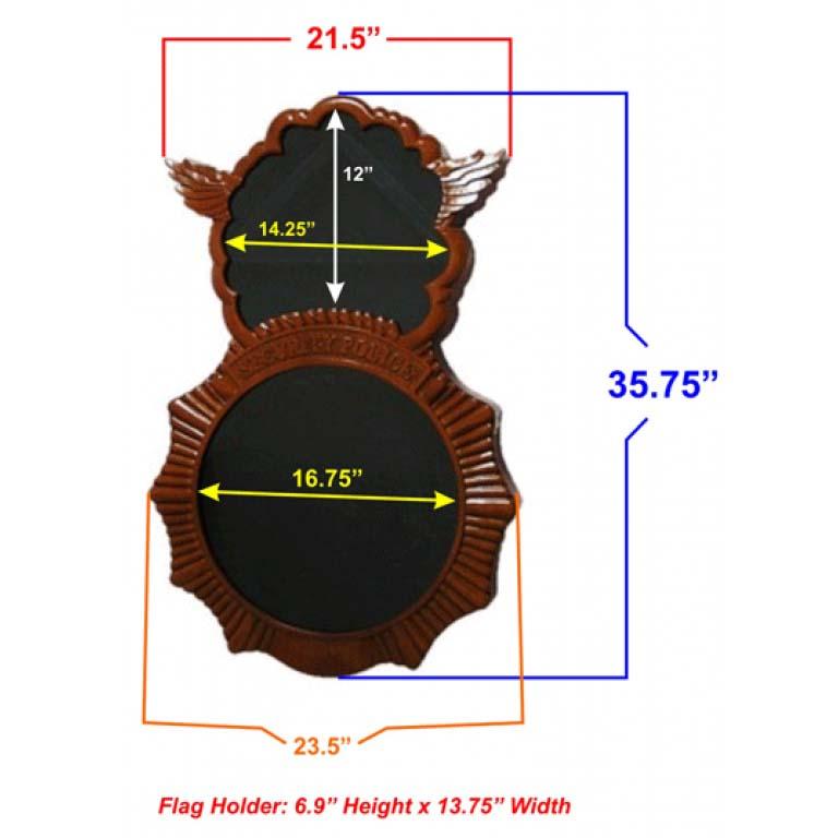 This solid mahogany shadow box shows the Security Police Shadow Box We accept custom orders with no set-up fees. All our Display Shadow Boxes are made from solid kiln dried mahogany ensuring no warping will occur. You can choose to have a full color or ""clear coat"" varnish front finish. Your Name and Rank and unit insignia can be etched on to the high quality glass used on the front of the Box. A recessed hook enables the plaque to hang flush against any wall.