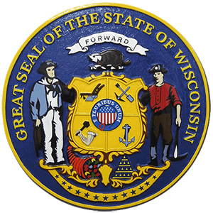 These solid mahogany wall plaques show the US States seals. Hand carved and hand painted mahogany wood plaque. A perfect as a wall plaque or podium plaque. Fantastic additions to any memorabilia collection. Great government retirement gift, government graduation gift, or government recognition awards. A recessed hook enables the plaque to hang flush against any wall. Wisconsin State Seal Plaque: The State Seal emphasizes mining and shipping. At the time of Wisconsin's founding in 1848 the mining of coal and iron was a huge industry that ended by the early 20th century due to the metals being mined out, although there are still substantial untapped iron reserves in Northern Wisconsin and the Upper Peninsula currently guarded by Native American reservations, National Parks, and remoteness. The Wisconsin State Seal is displayed in all courtrooms in Wisconsin, and in the case of county circuit courts often alongside the county seal. It is also the centerpiece of the state flag, which is basically the State Seal on a blue background.